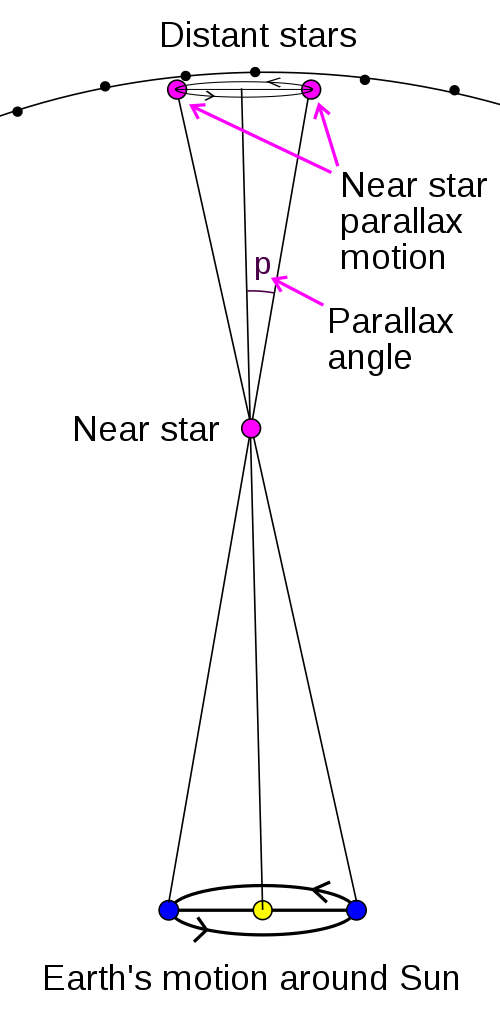 Measuring distances in space is hard. Measuring them accurately is very hard, mainly because everything is so far away. The best method is to look at the stars from places that are very far apart. Like, say, the same place on Earth…six months apart, when the planet is on opposite sides of its orbit. If you can do that, a little trigonometry will tell you how far they are, a technique known as stellar parallax.