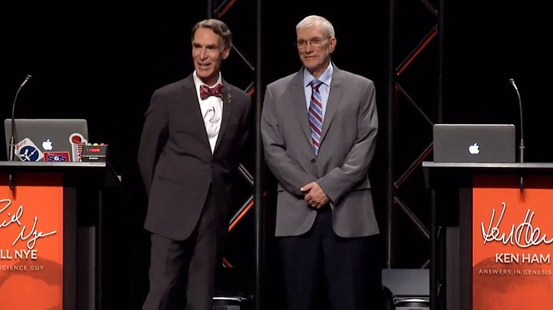 Bill Nye (left) and Ken Ham (right) at their debate at the Creation Museum. Credit: Answers in Genesis (YouTube).