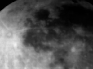 Here is an area slightly north of the first photo showing Oceanus Procellarum with a lighter auto-adjusted brightness. (I told you they were raw images.) I took these two photos at the very beginning of the eclipse. If you look carefully, you will see a darkened region at the top of the Moon’s disk, which is where it’s starting to enter Earth’s outer shadow.