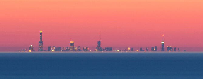 Take this photo of the Chicago skyline, for example. It taken from the other side of Lake Michigan, 60 miles (100 km) away. If you do the math, the skyline should be behind the horizon on a round Earth. What’s going on?